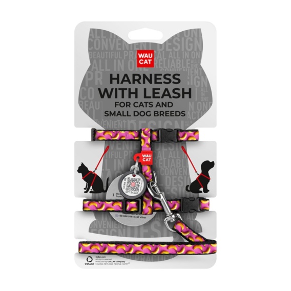 WAUDOG Nylon Szelki ze smyczą dla kota z zawieszką QR Banany na Różu
